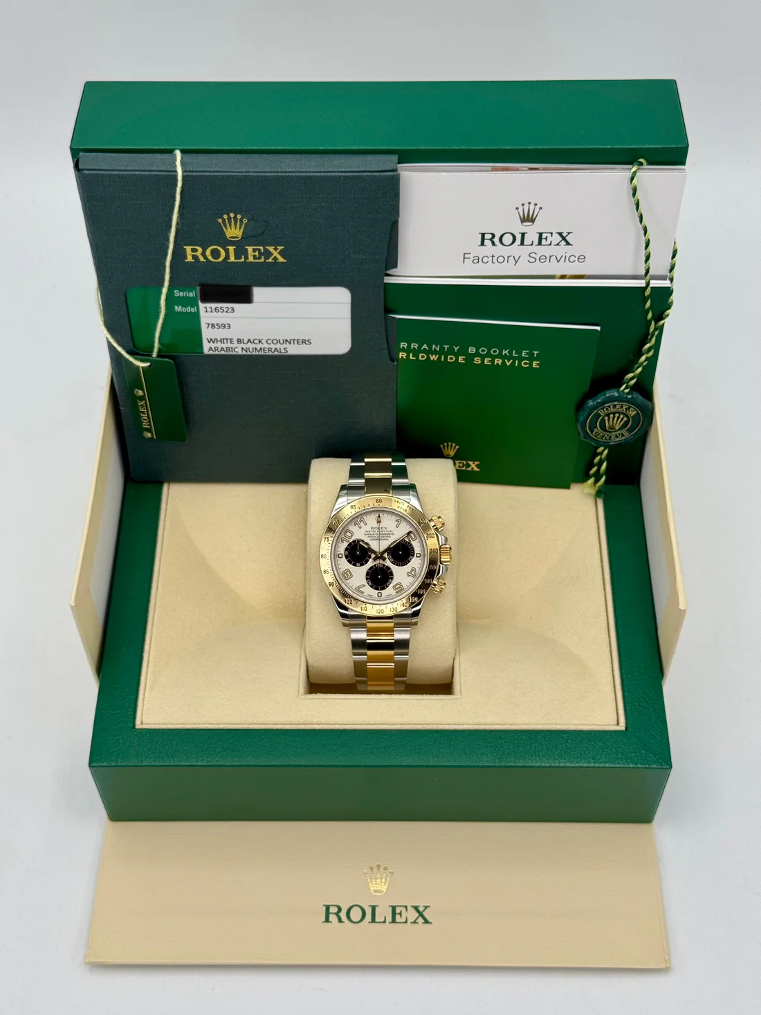 2016 Rolex Cosmograph Daytona 40mm 116523 Oystersteel and Yellow Gold Oyster Bracelet with a White Panda Arabic Racing Dial