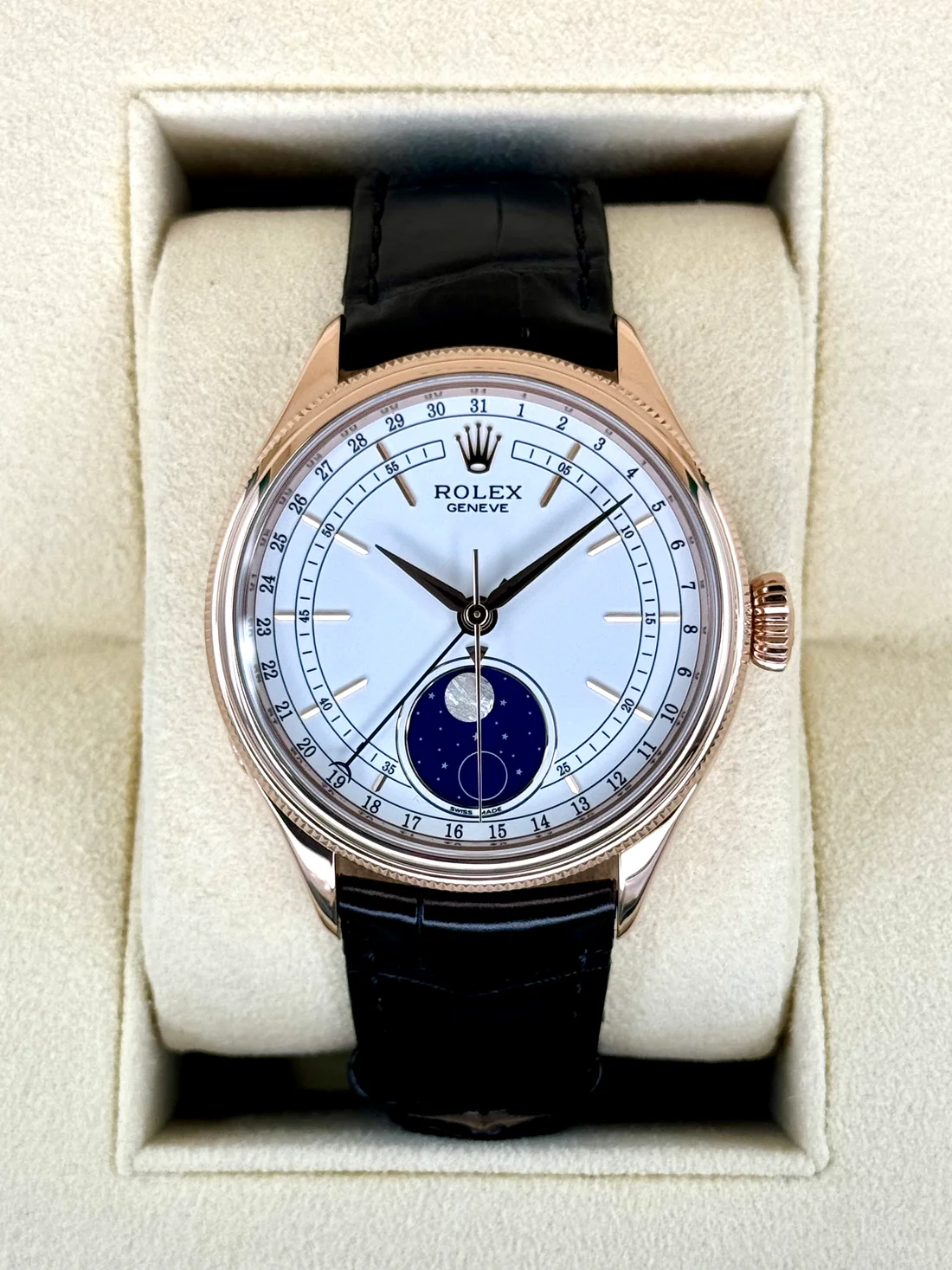 2018 Rolex Cellini Moonphase 39mm 50535 Rose Gold White Dial
