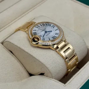 2021 Cartier Ballon Bleu De Cartier 33mm WJBB0042 Yellow Gold with Diamond Bezel and Silver Dial