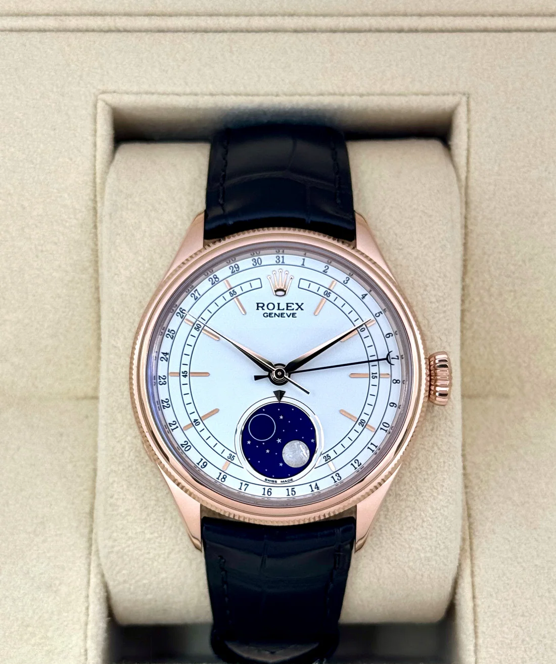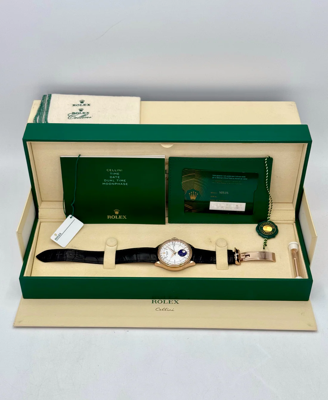 2022 Rolex Cellini Moonphase 39mm 50535 Everose Gold White Dial