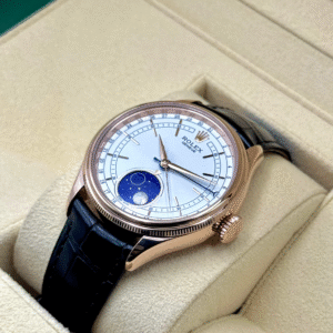 Be the first to review “2022 Rolex Cellini Moonphase 39mm 50535 Rose Gold White Dial”
