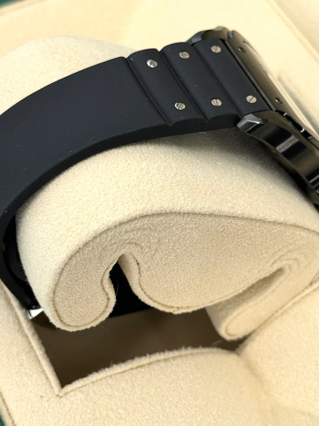 ✔️Adjustable rubber strap. 2nd strap in black alligator leather