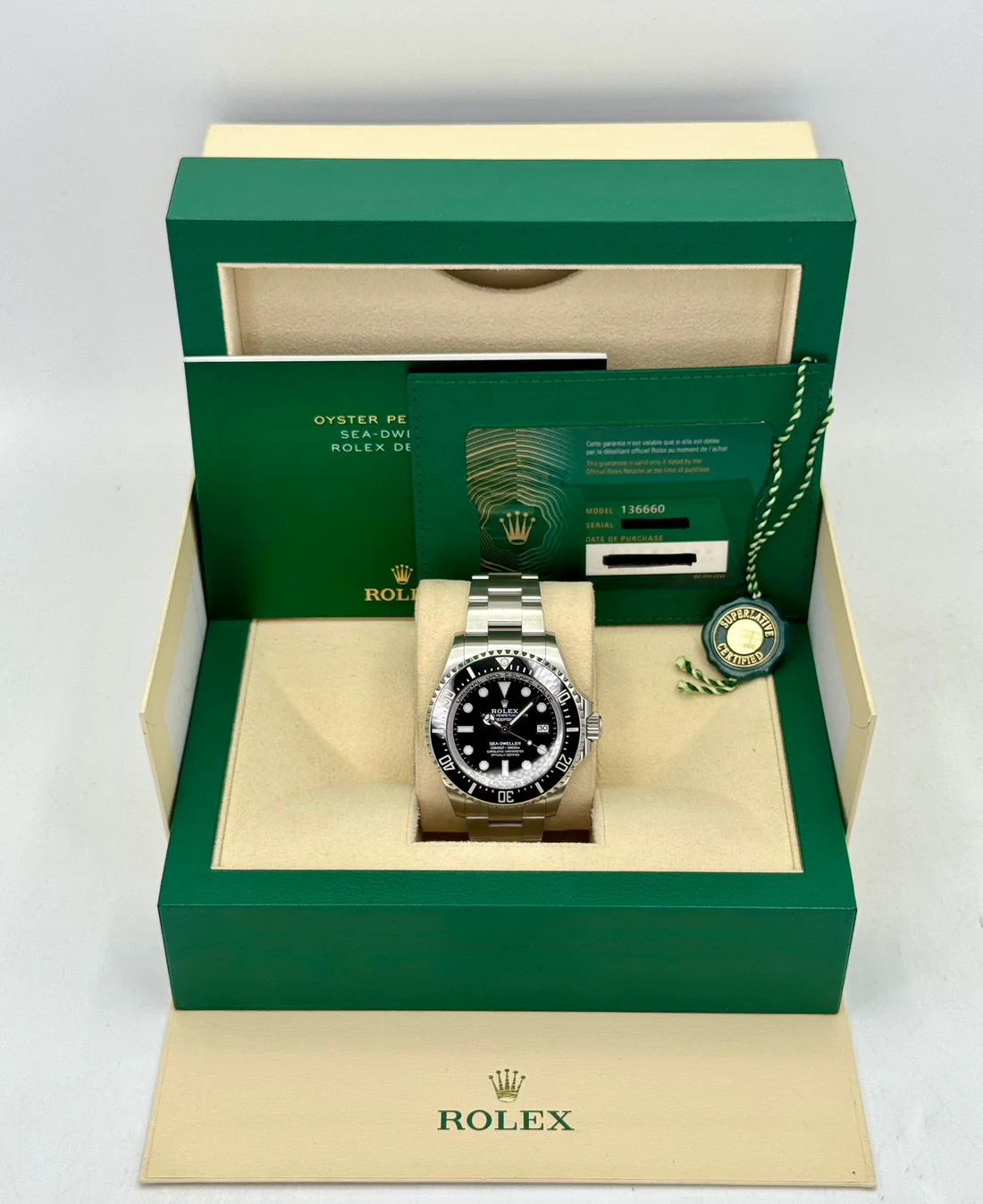 2023 Rolex Deepsea 44mm 136660 Oystersteel with a Cerachrom Bezel insert in Black Ceramic Oyster Bracelet Black Dial