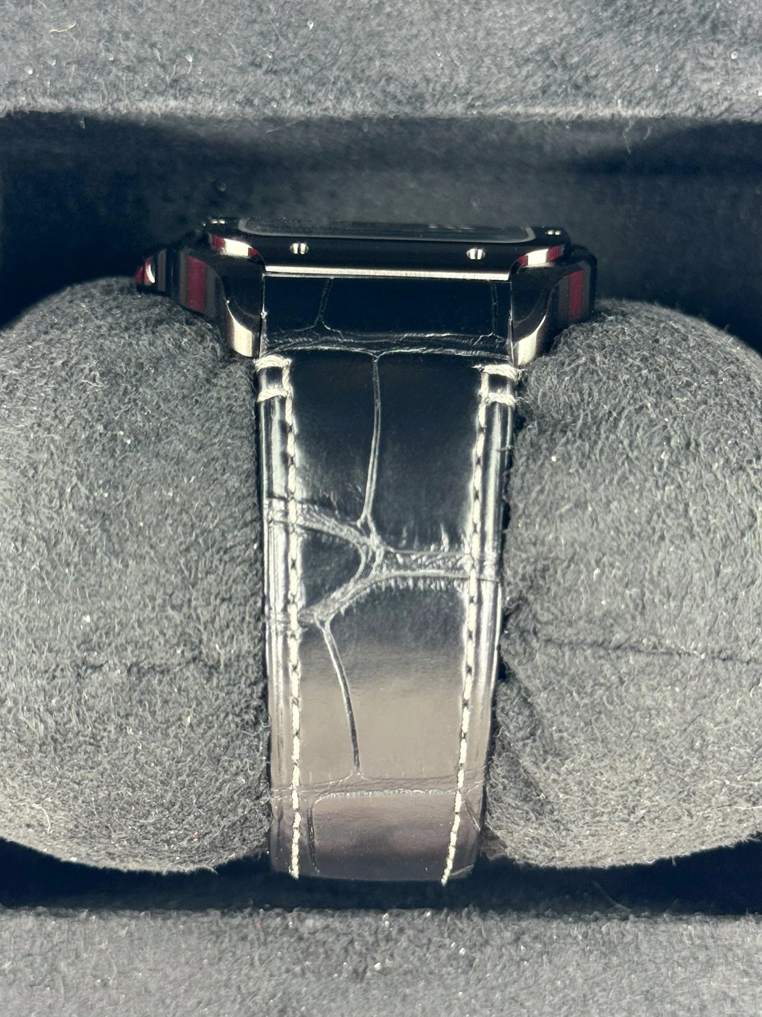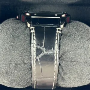 ✔️Adjustable Black Alligator leather strap. 2nd black rubber strap