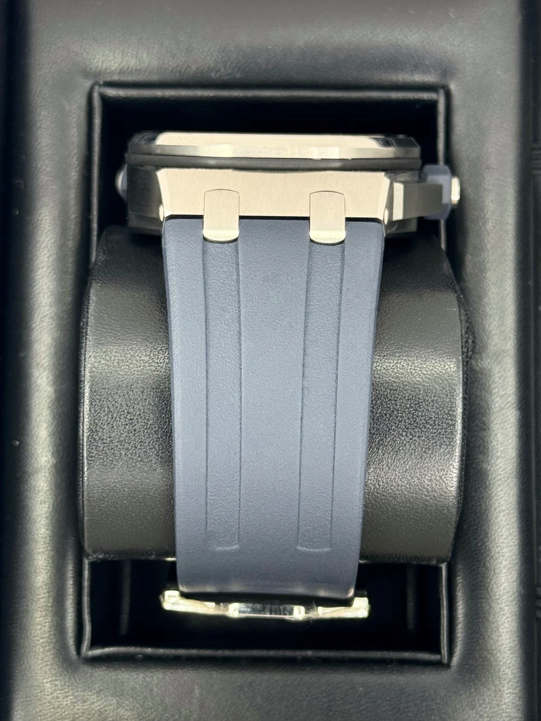 ✔️Blue dial with “Méga Tapisserie” pattern, white gold applied hour-markers and Royal Oak hands with luminescent coating