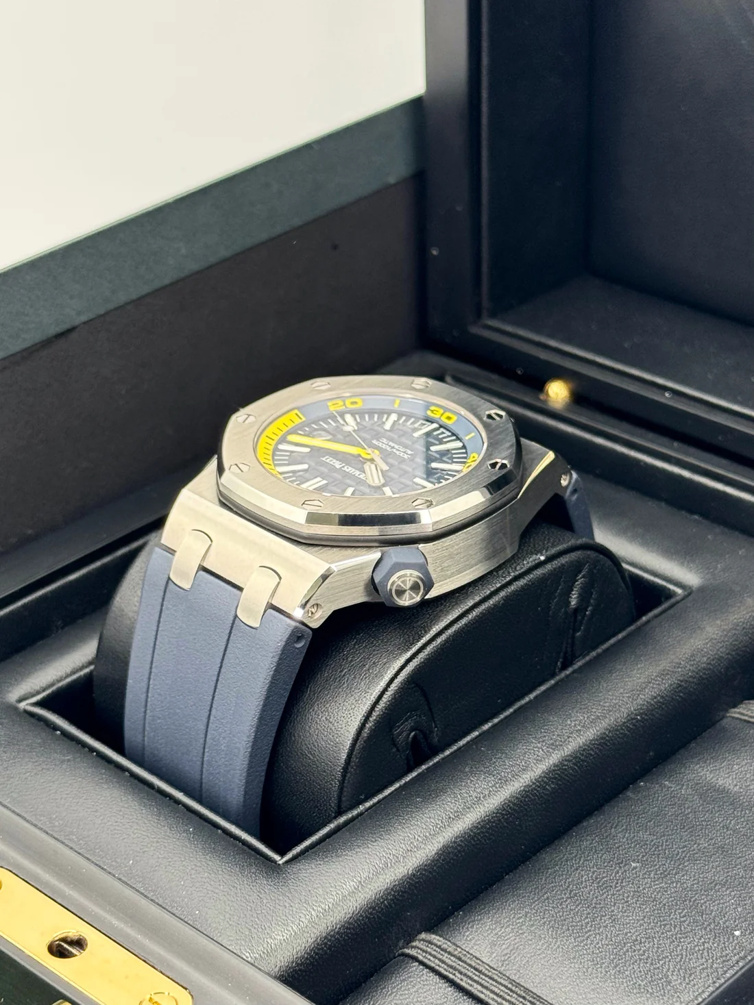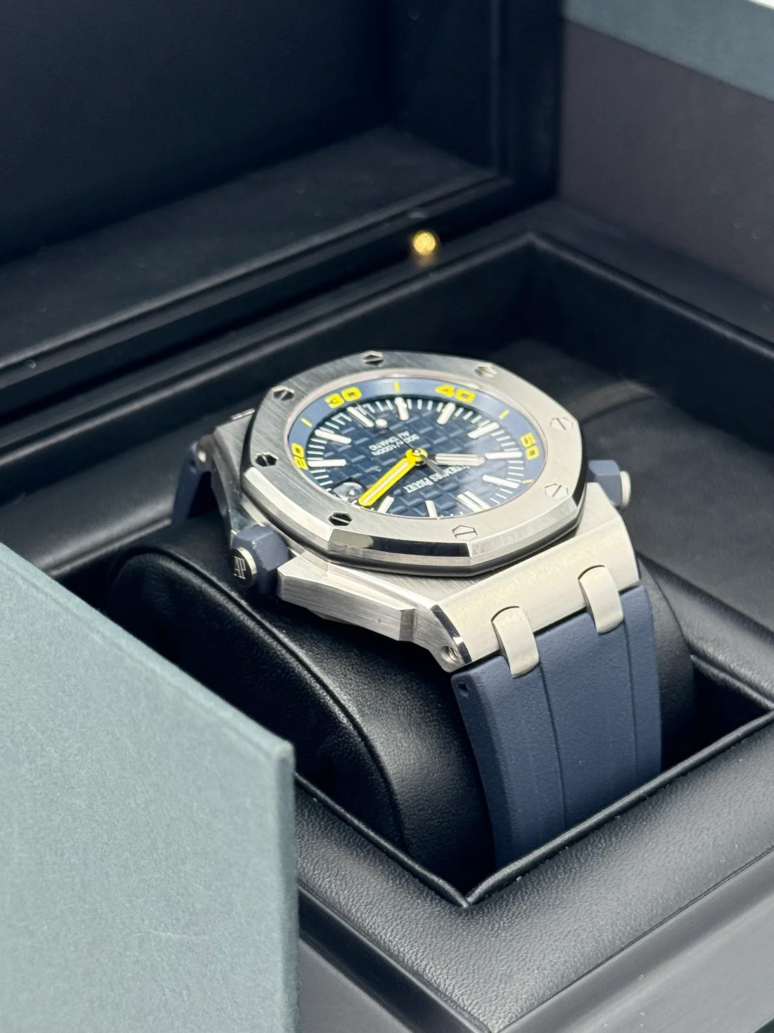 NEW 2020 Audemars Piguet Royal Oak Offshore Diver 42mm 15710ST.OO.A027CA.01 Stainless Steel Blue TapisserieDial