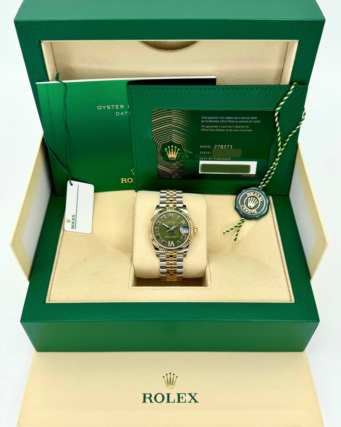 NEW 2025 Rolex Datejust 31mm 278273 Two-Tone Oystersteel and Yellow Gold Jubilee Bracelet and Green Dial