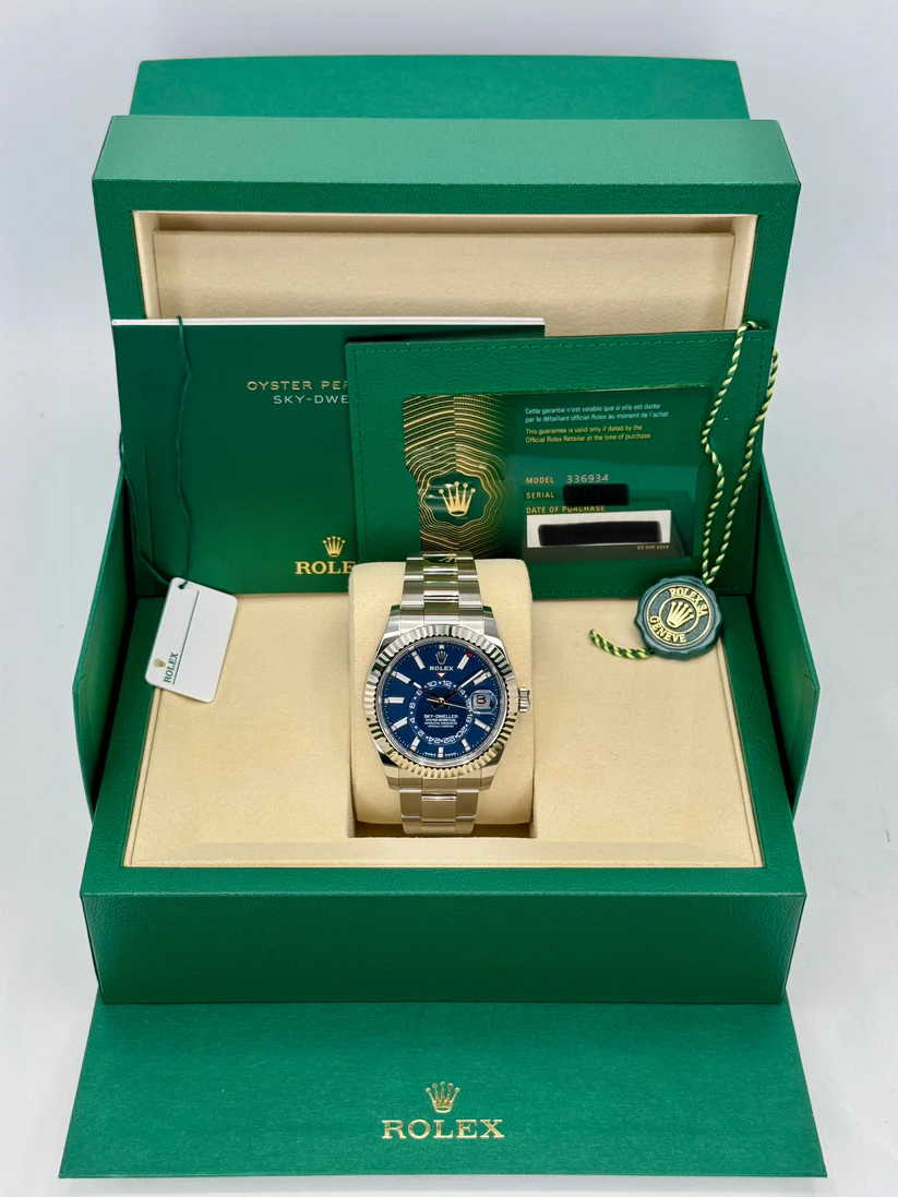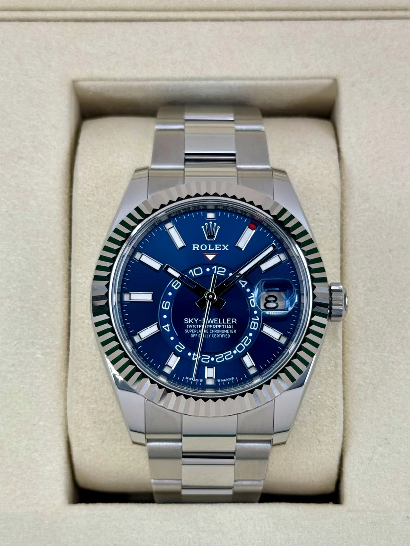 NEW 2025 Rolex Sky-Dweller 42mm 336934 Stainless Steel and 18k White Gold Fluted Bezel Oyster Bracelet Blue Dial